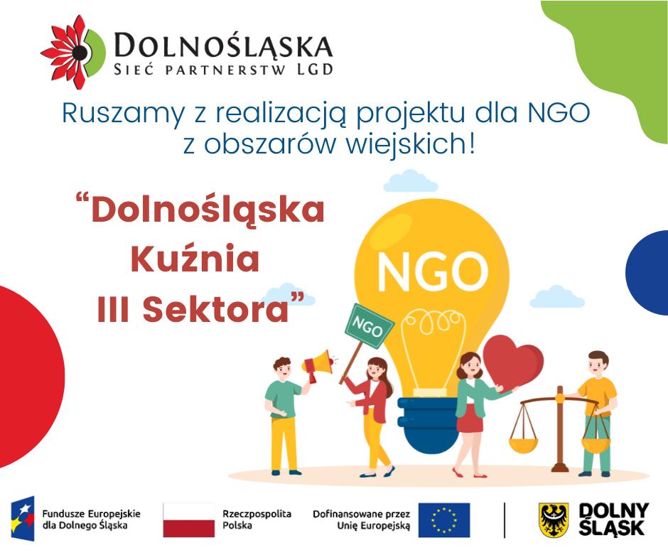 Związek Stowarzyszeń „Dolnośląska Sieć Partnerstw LGD” (wnioskodawca i lider projektu) realizuje projekt „Dolnośląska Kuźnia III Sektora” w partnerstwie z: